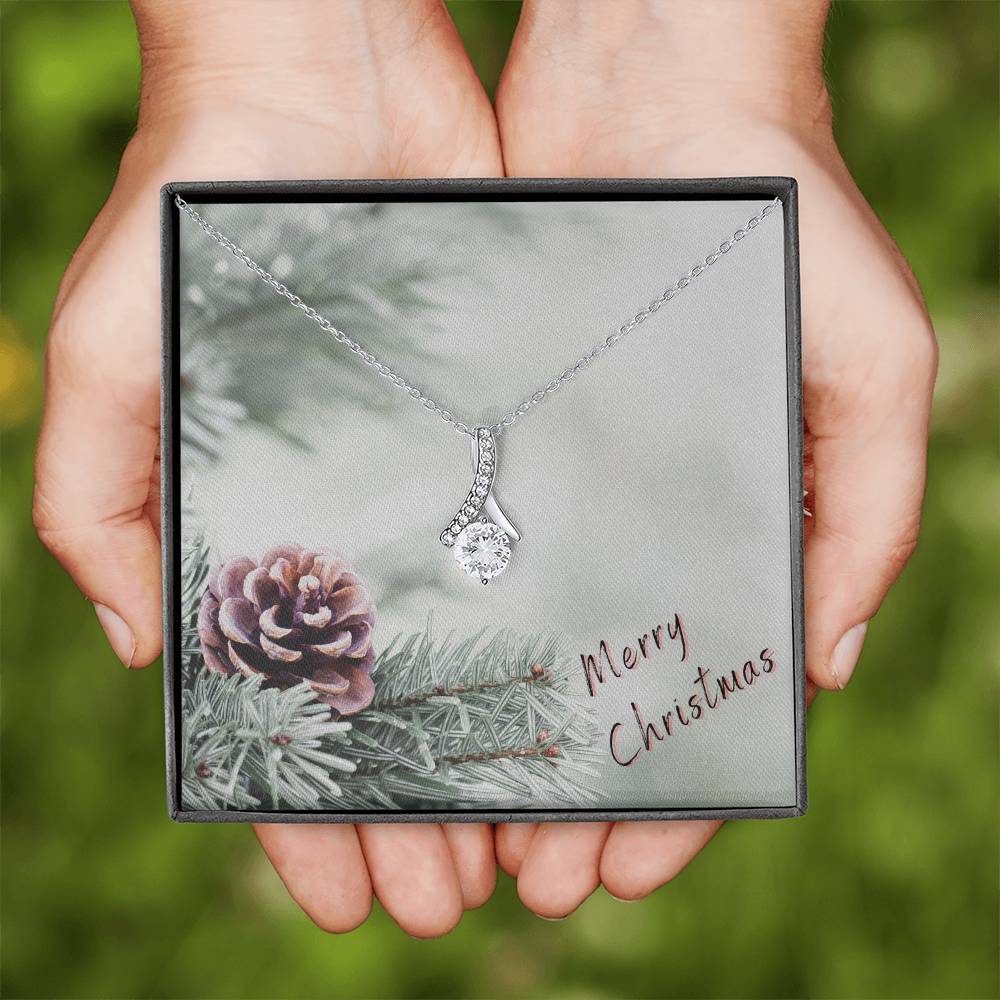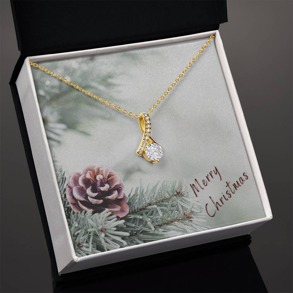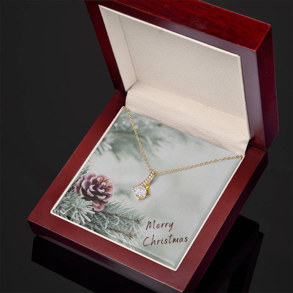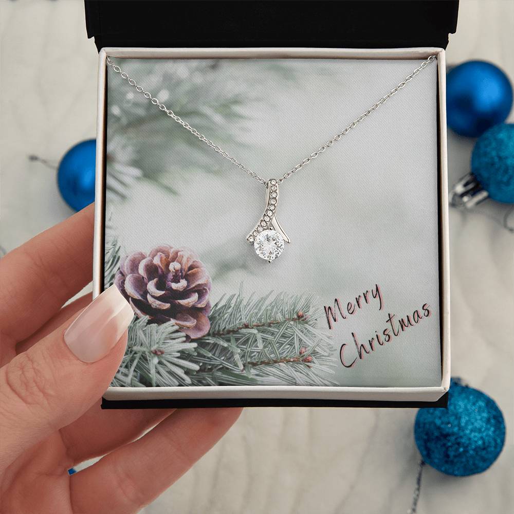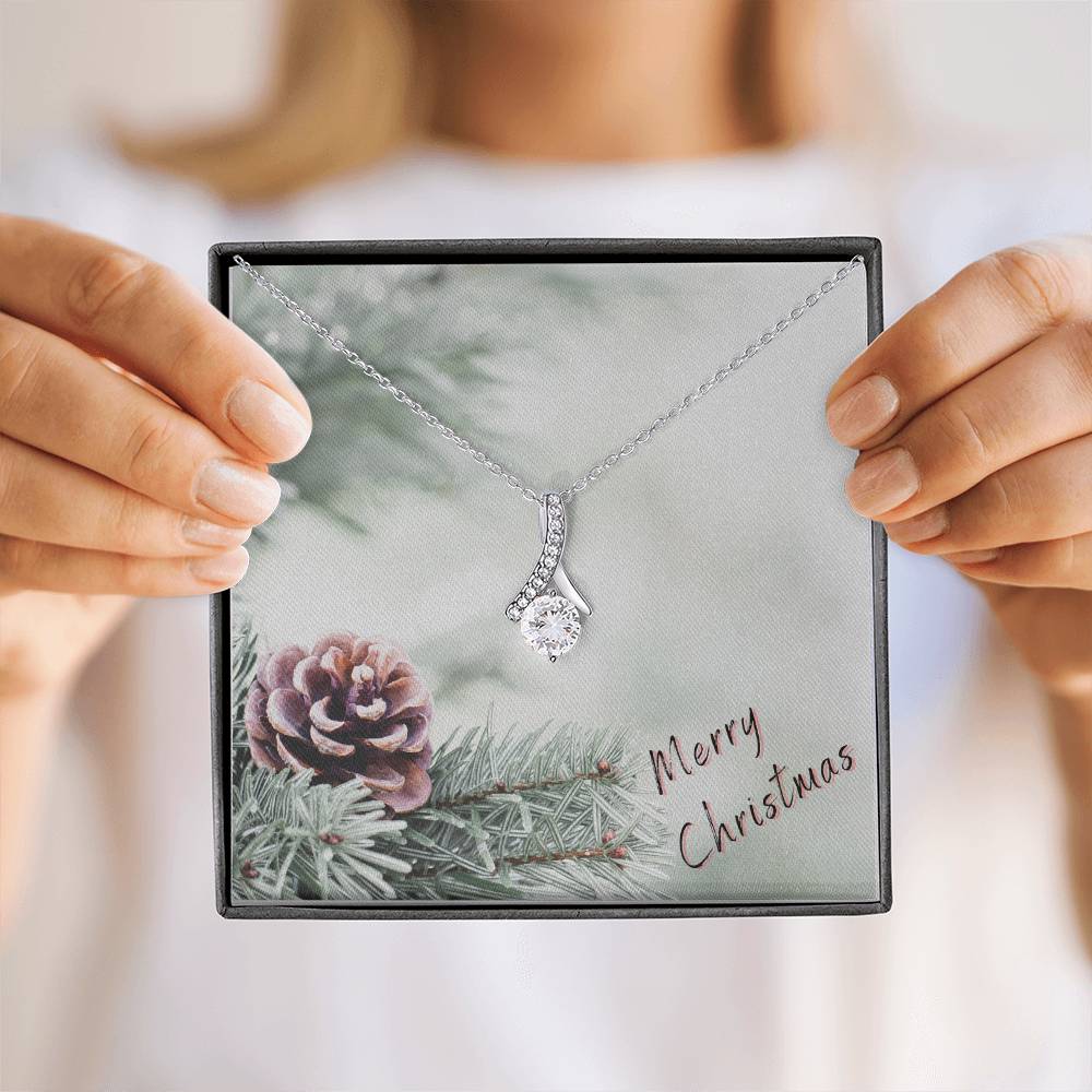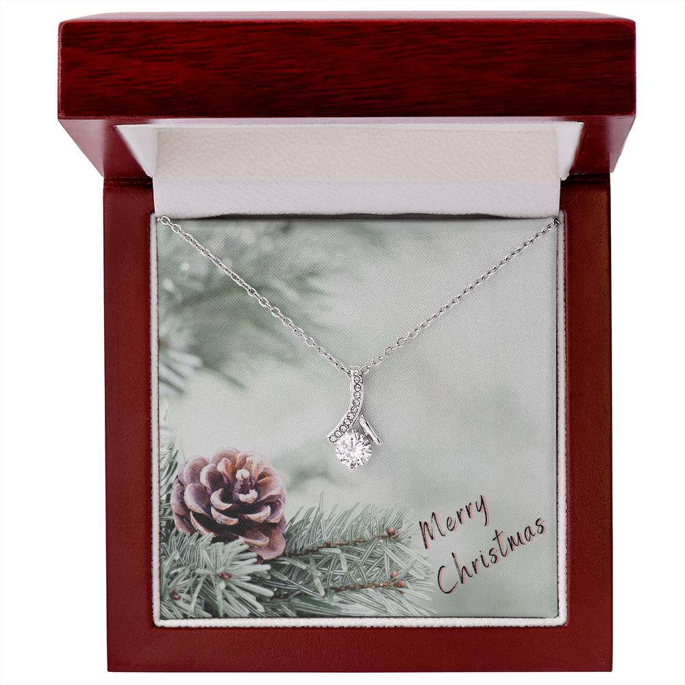 Imagine her reaction when she opens this stunning gift! The Alluring Beauty necklace features a petite ribbon shaped pendant that is sure to dazzle your special someone. Make sure to get her a gift she will love for years to come.